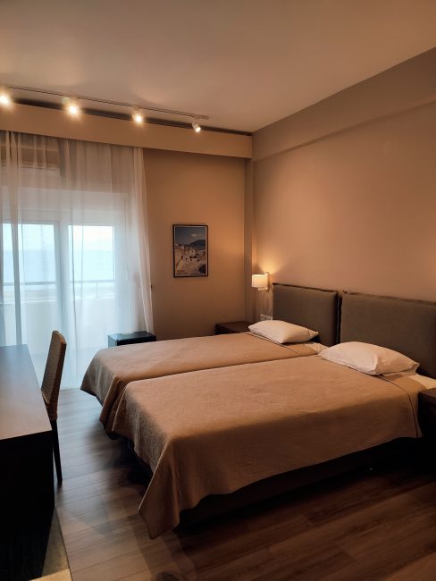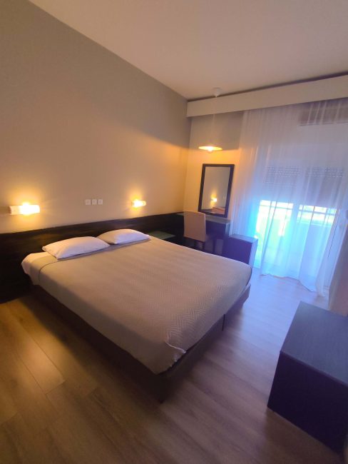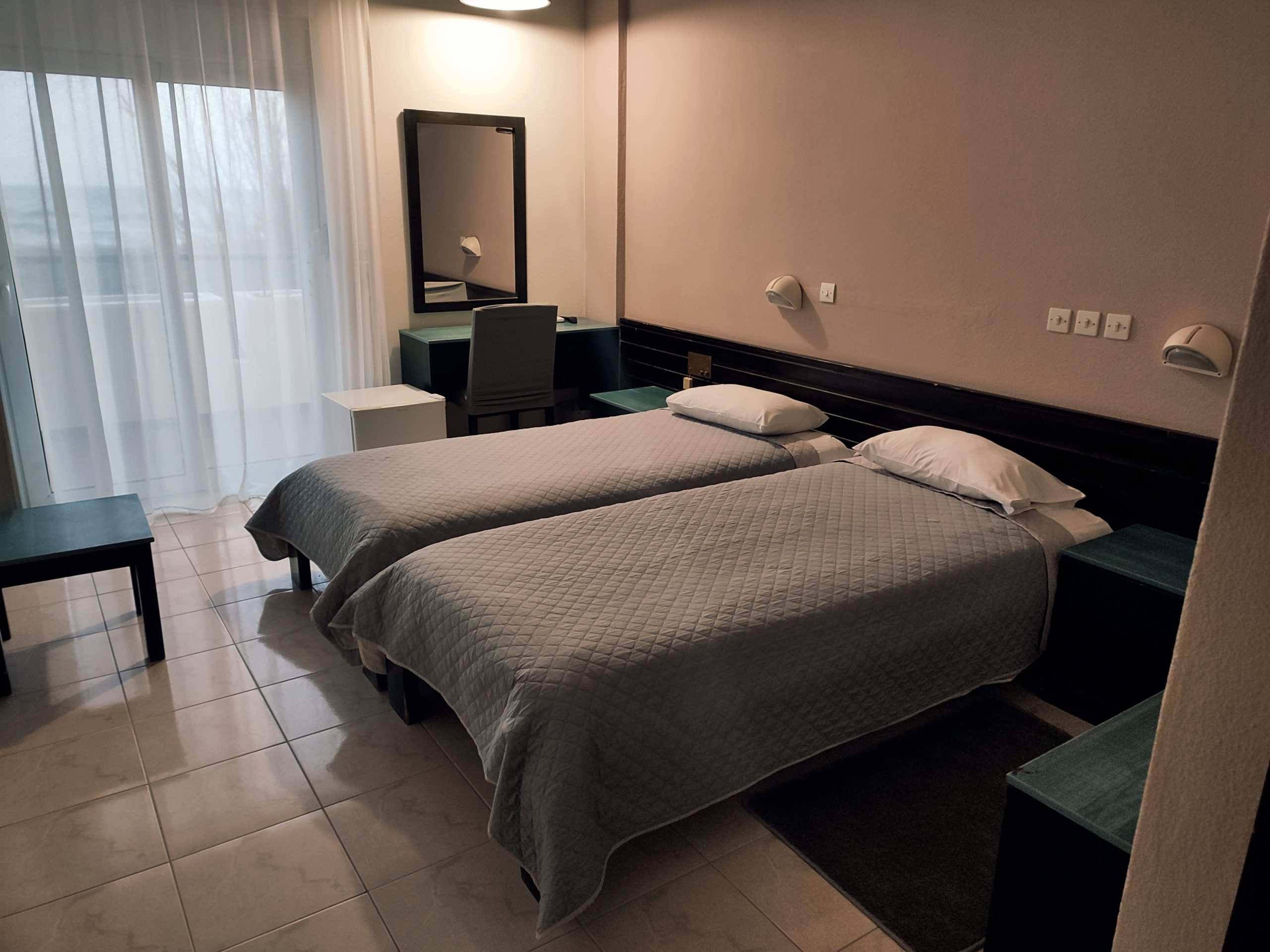 Το ξενοδοχείο διαθέτει 22 (εικοσιδύο) δίκλινα δωμάτια. Τα 7 έχουν δύο κρεβάτια και μία πολυθρόνα η οποία ανοίγει και γίνεται κρεβάτι με παχύ στρώμα. Τα 15 διαθέτουν 2 κρεβάτια και τα 3 έχουν ένα διπλό κρεβάτι. Το εσωτερικό μπάνιο - WC είναι τύπου ντούς.
