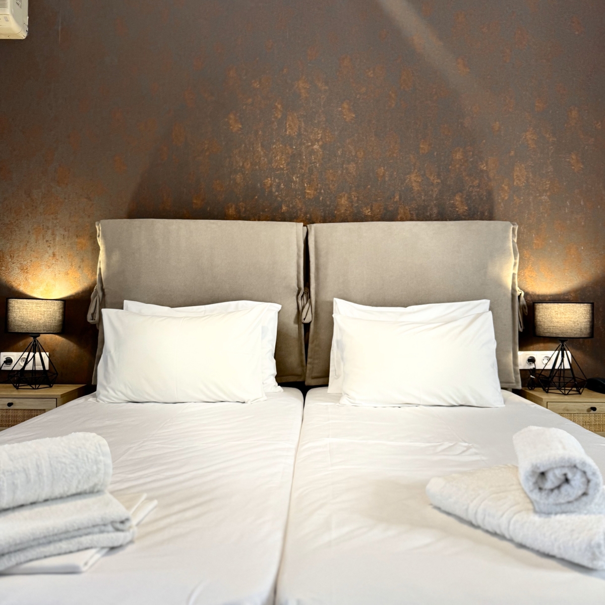 με μικρή κουζίνα. Διαθέτει 1 διπλό κρεβάτι ή 2 μονά κρεβάτια.