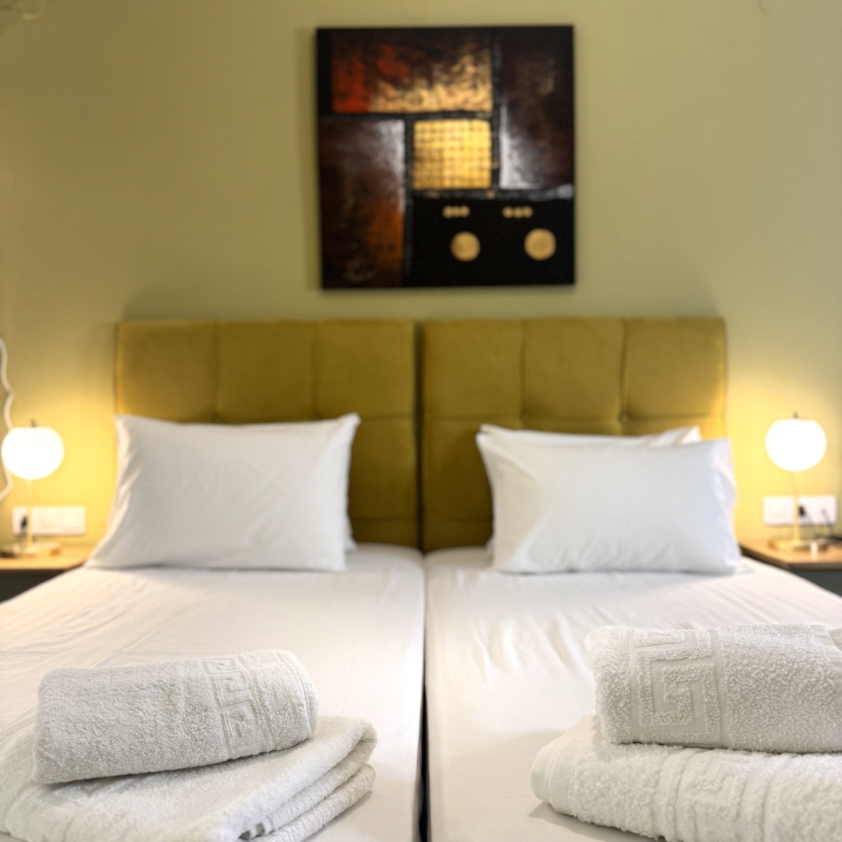 Στούντιο 22 m2 με εξοπλισμένη κουζίνα και βεράντα με θέα στον κήπο. Διαθέτει 1 διπλό κρεβάτι ή 2 μονά κρεβάτια.