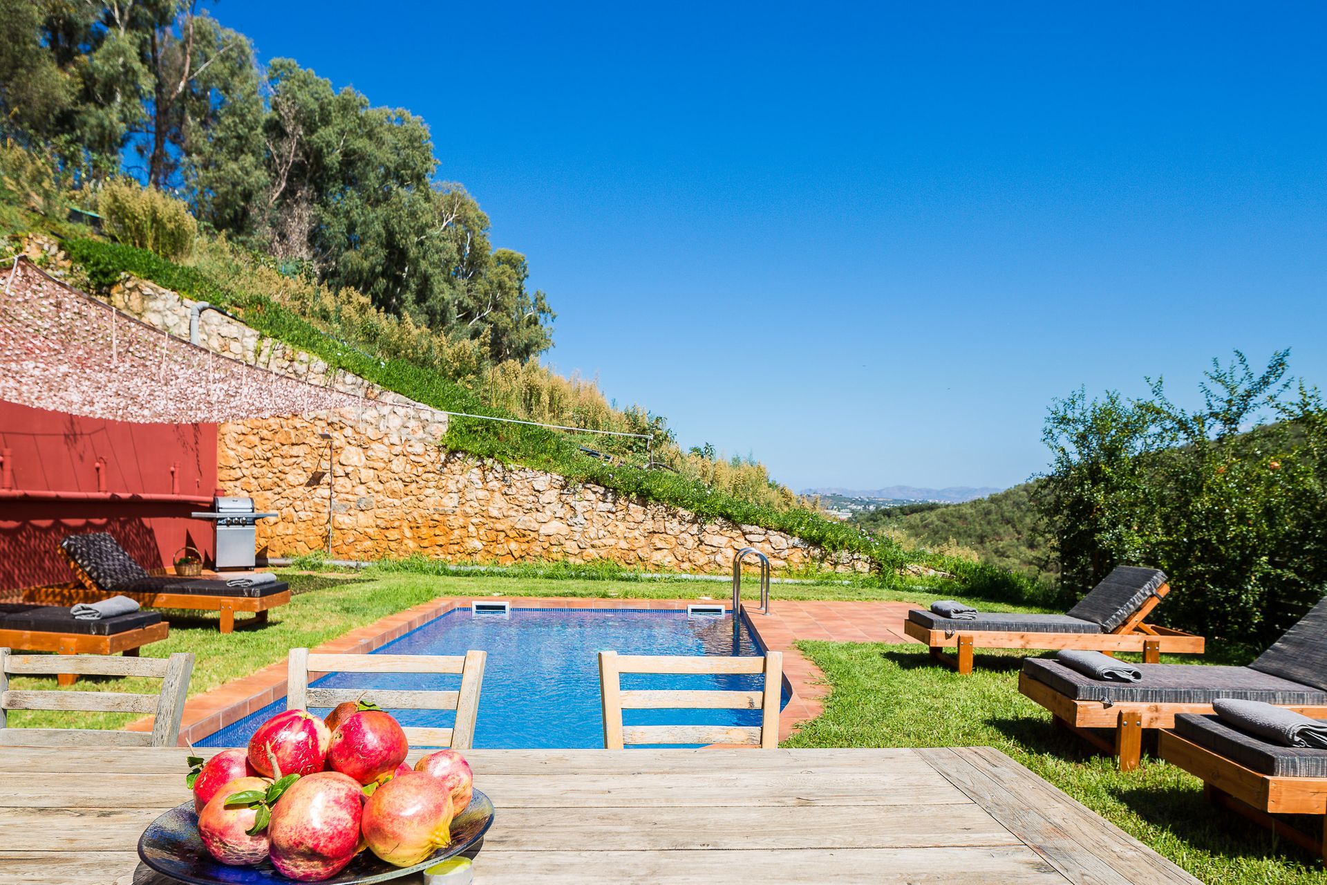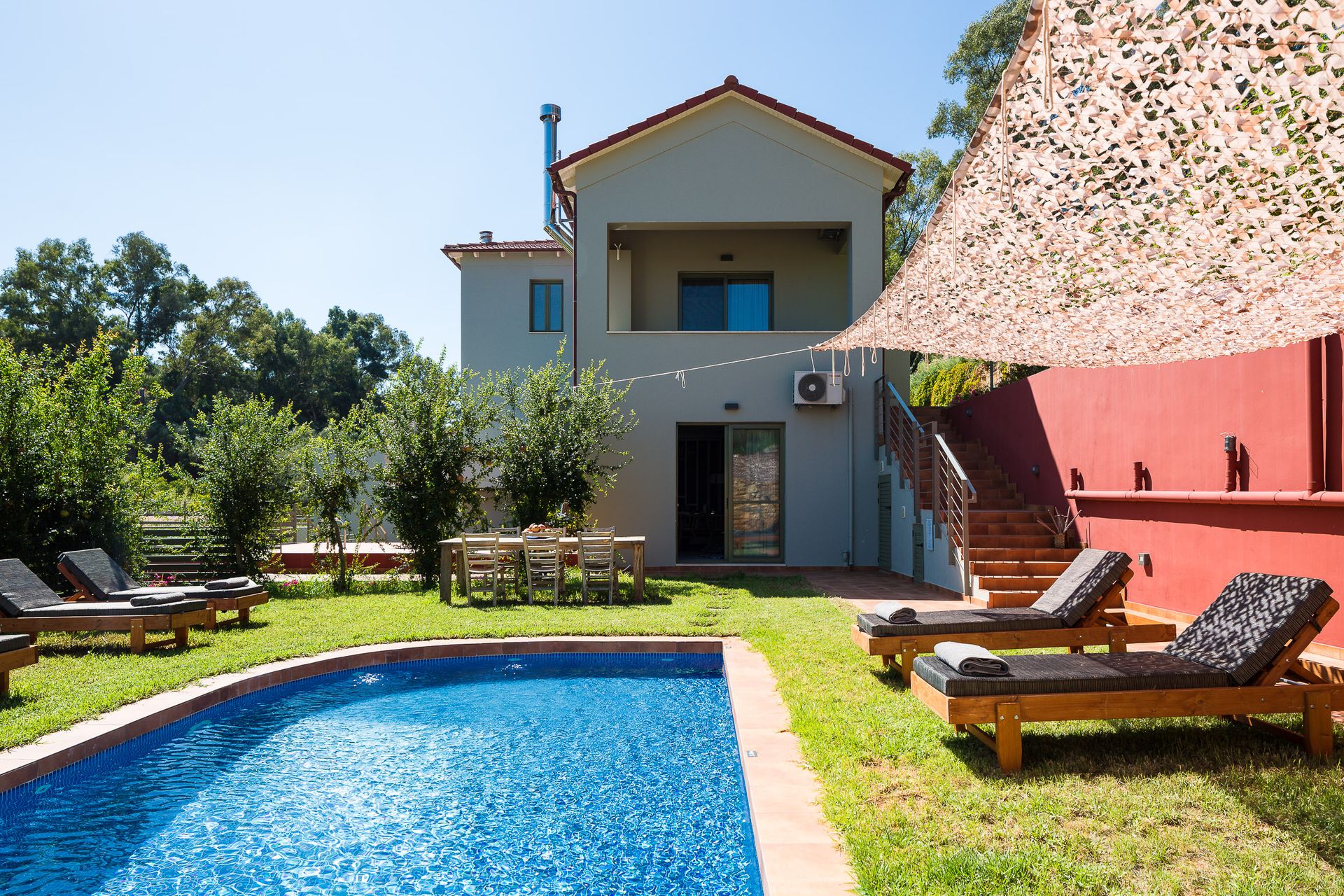 Η Villa Erato διαθέτει ιδιωτική πισίνα στο ύπαιθρο, καλά εξοπλισμένη με ομπρέλες, άνετες ξαπλώστρες και υπαίθριο χώρο τραπεζαρίας. Κάντε ηλιοθεραπεία κάτω από τον ελληνικό ήλιο και το βράδυ χαλαρώστε δίπλα στην πισίνα και θα σας συντροφεύει ο καθαρός και έναστρος ουρανός. Το συγκρότημα διαθέτει ατελείωτη θέα στο βουνό, αγροκτήματα στα οποία μπορείτε να ξεναγηθείτε και καταπληκτικούς βιολογικούς ιδιωτικούς κήπους που εκτείνονται σε 15 στρέμματα.